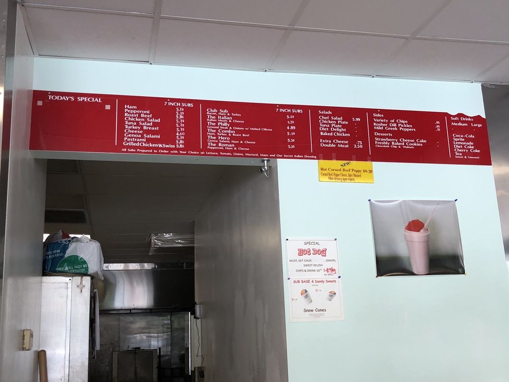 Sub-Base Sandwich Shoppe/Dandy Donuts Menu